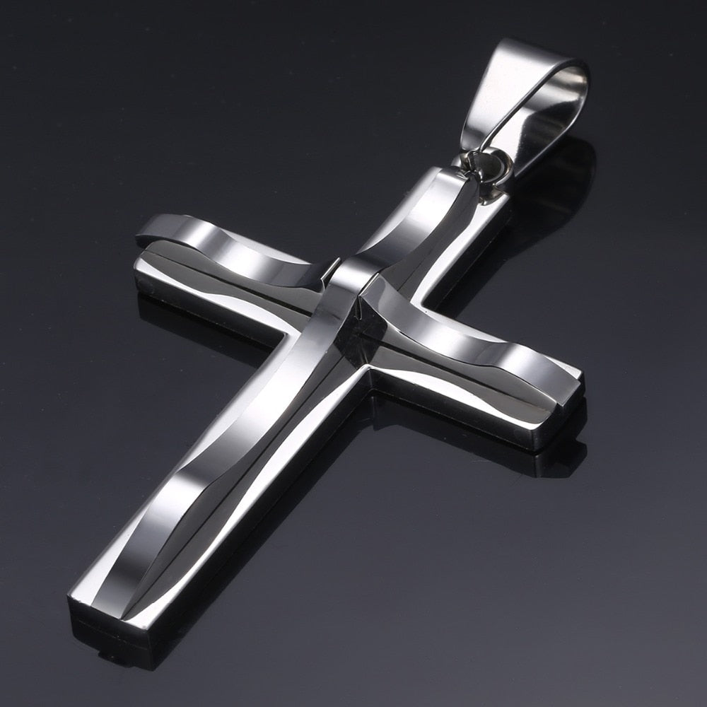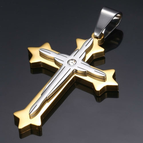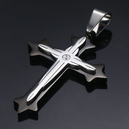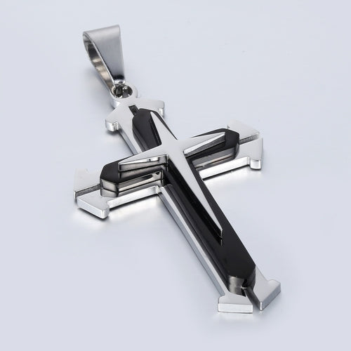 Dropshipping Cross Pendant Necklaces For Men Black Gold Color Silver