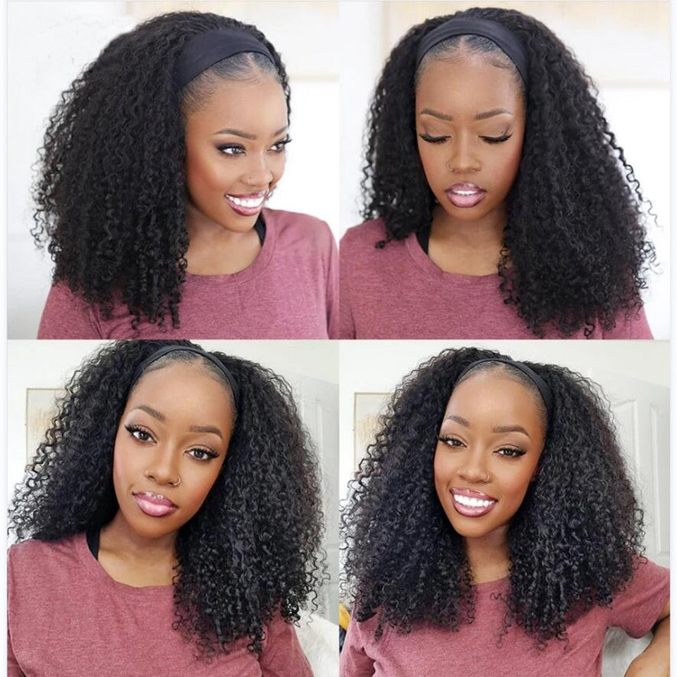 Hair Material: Mongolian Kinky Curly Headband Wig