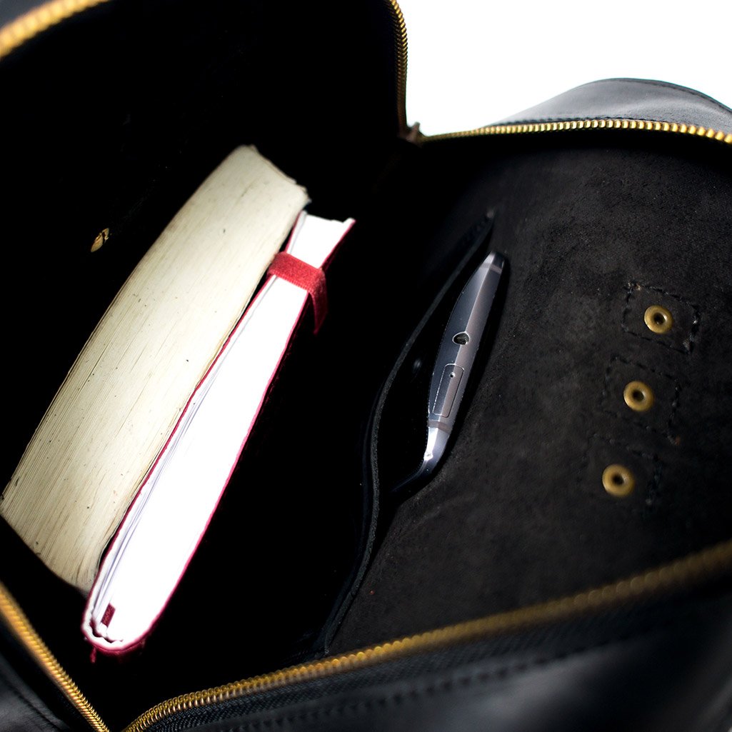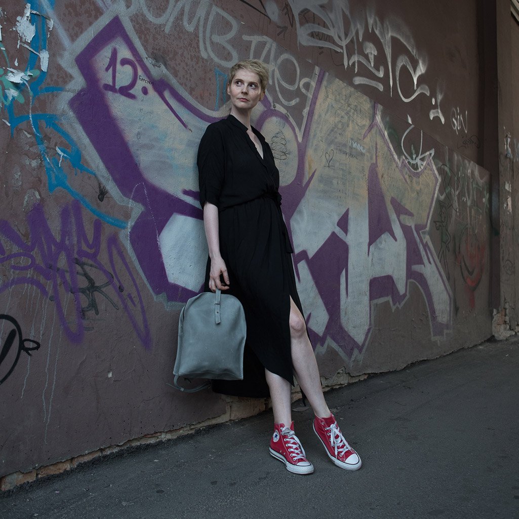 This backpack is available in two sizes: S and M. The main compartment secures with a zip fastening and opens to reveal an unlined backing and additional pocket, perfect for keeping your essentials safe. The backpack straps are adjustable. The M-size backpack is made with wider straps for your comfort.